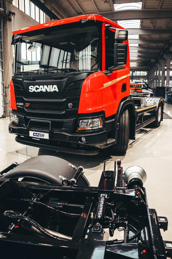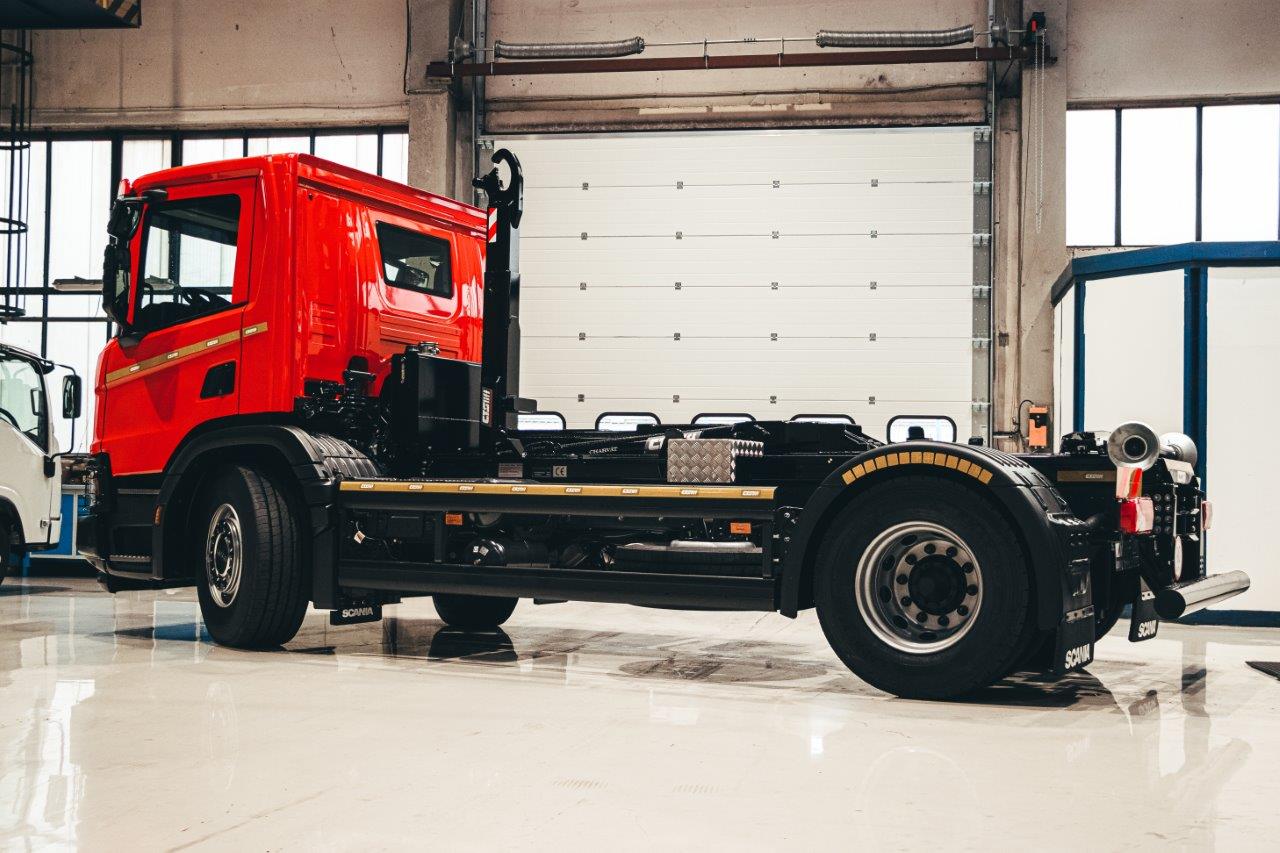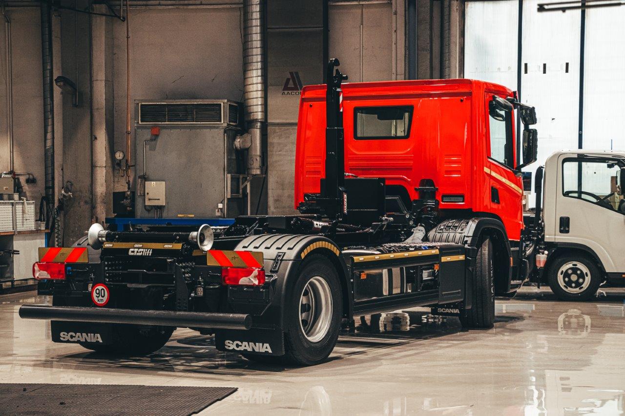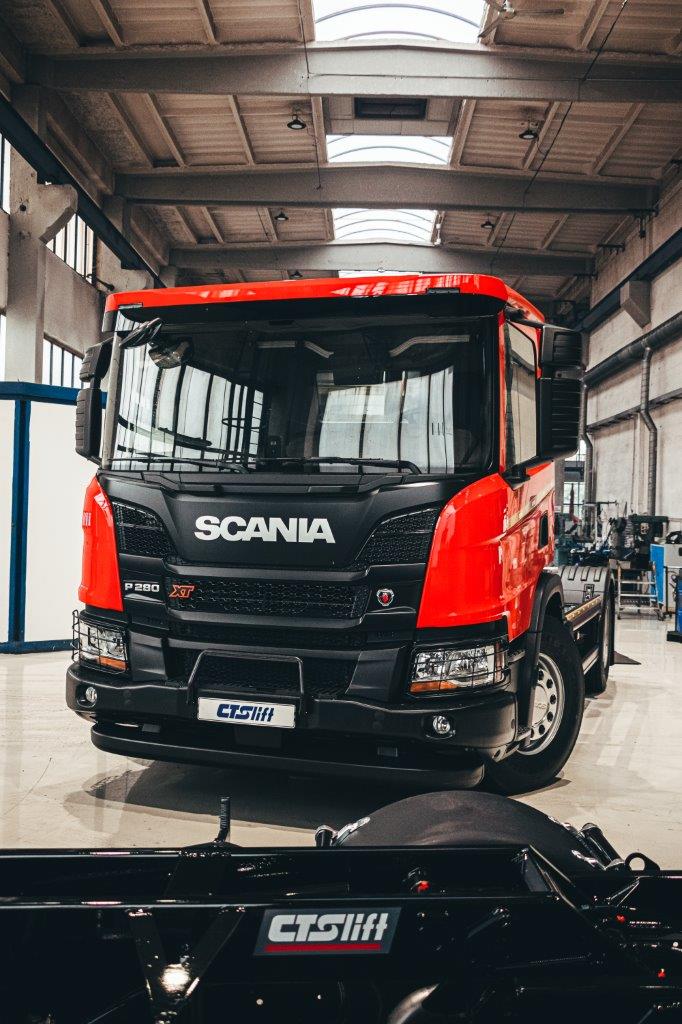 Dalšímu zákazníkovi jsme předali nosič kontejnerů SCANIA NTG P280 4x2_CTS 12-39-S-DIN1570 pro přepravu kontejnerů D1 dle německé normy DIN 30.722-1 (výška háku 1 570 mm).
