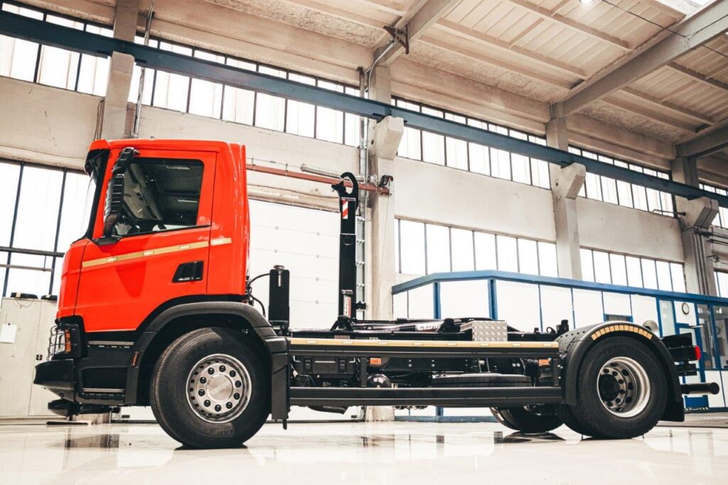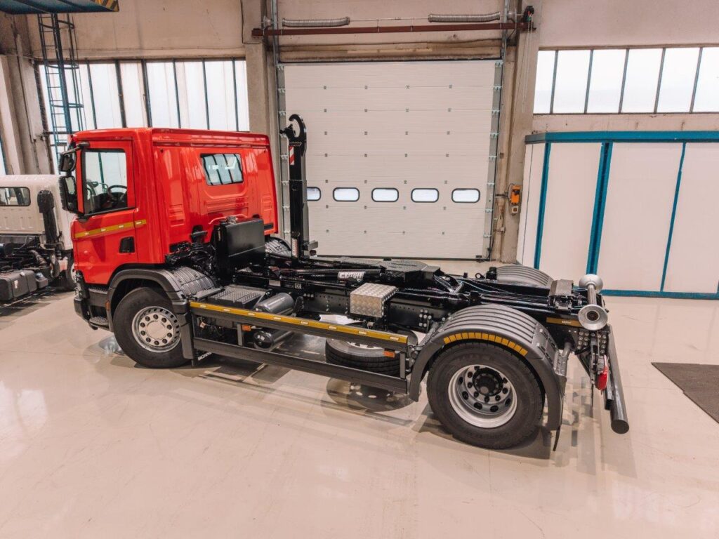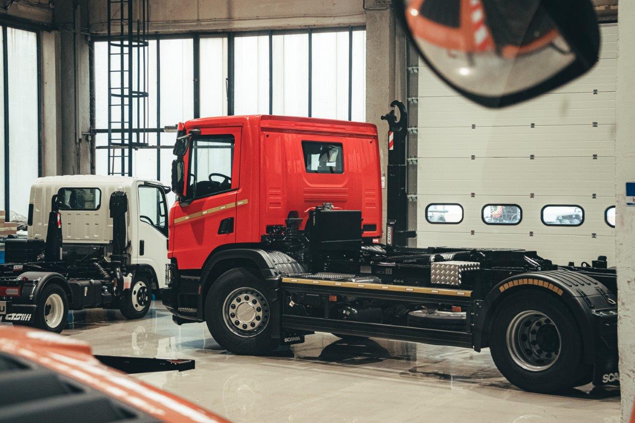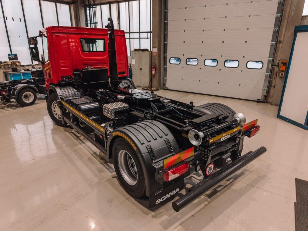 Dalšímu zákazníkovi jsme předali nosič kontejnerů SCANIA NTG P280 4x2_CTS 12-39-S-DIN1570 pro přepravu kontejnerů D1 dle německé normy DIN 30.722-1 (výška háku 1 570 mm).